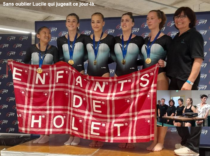 Bravo aux gymnastes, Salomé, Loan, Morgane, Laurine, Anaïs, Lauriane et à Mélissa, leur entraîneur, accompagnée au jugement par Sarah.