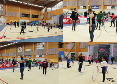 Avec Mélissa et ses gymnastes, le public a pu s’essayer aux différents engins et faire tournoyer cerceaux, rubans, massues et ballons. Des plus jeunes aux adultes, individuellement ou en groupe, chacun a pu découvrir la gymnastique rythmique dans une ambiance très conviviale.