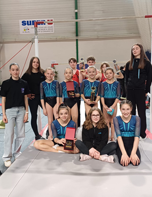 Avec 38 podiums et de très belles prestations, nos gymnastes ont ravi parents et amis venus les encourager. Félicitations à tous ainsi qu’aux entraîneurs. Merci beaucoup aux nombreux juges qui ont donné leur temps pour les compétiteurs.