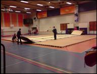 Lors de chaque compétition, la préparation des salles d’échauffement et de compétition, et leur rangement, participent au programme de maintien en forme des bénévoles !