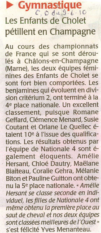 Courrier de l’Ouest du 09/06/2010