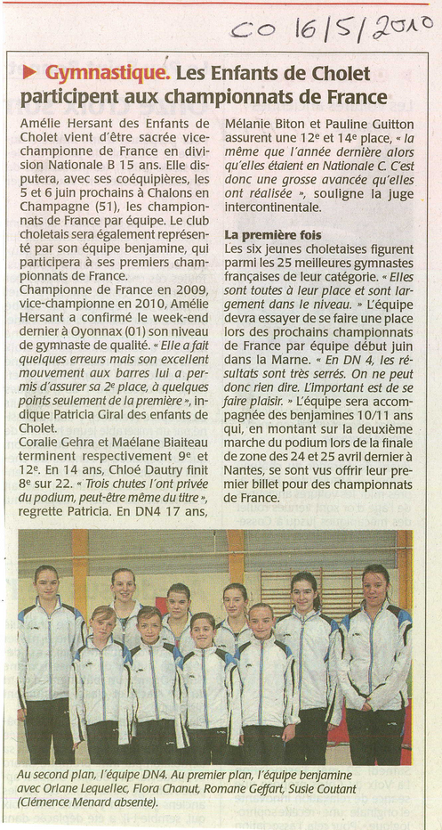 Courrier de l’Ouest du 16/05/2010