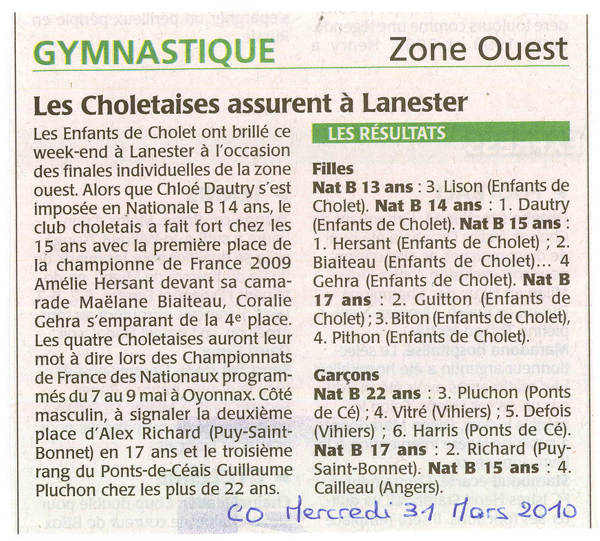 Courrier de l’Ouest du 31/03/2010